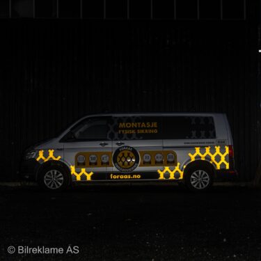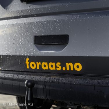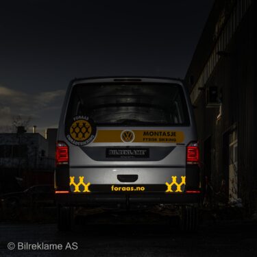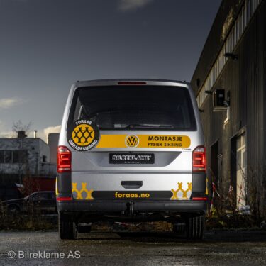 Vi har fått profilert enda en bil i Foraas-flåten – en Volkswagen Transporter – og Bilreklame har levert jobben solid som alltid. Denne gangen gikk vi for en liten oppgradering av uttrykket vårt: den kjente dekoren er på plass, men mønsteret på sidene og webadressen er nå laget i gul refleks. Vi ønsker som kjent å vises i trafikkmiljøet, og må selvfølgelig fornye oss! Dette gir bedre synlighet når vi er ute på oppdrag, spesielt i mørke og krevende omgivelser.
